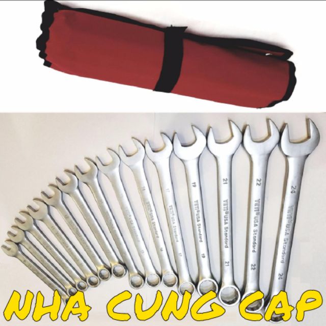 Bộ cờ lê vòng miệng 14 chi tiết:8, 10, 11, 12, 13, 14, 15,16, 17,18, 19, 21,22, 24mm/ dạng 1 đầu hở 1 đầu tròn