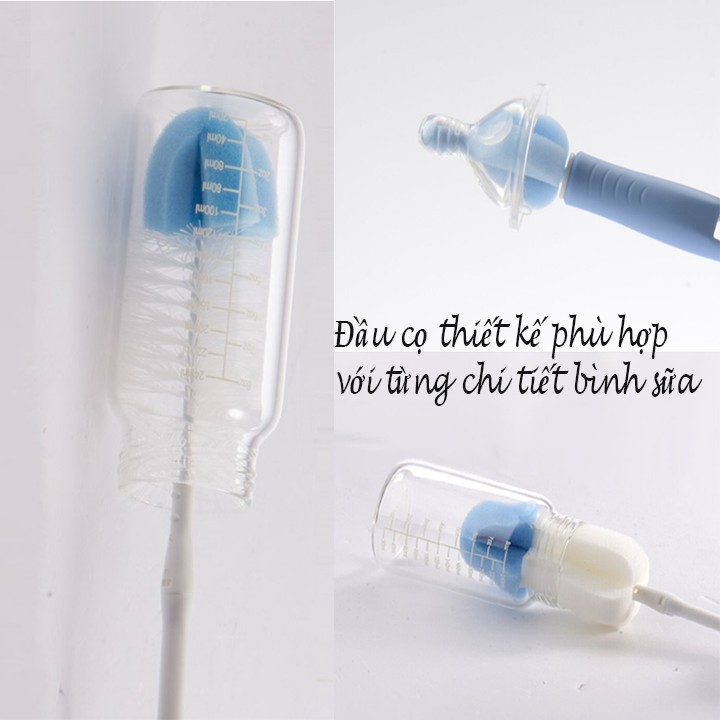 ✔ Đầu cọ xòe rộng nhanh chóng lấy sạch các vết bẩn mọi ngóc ngách của bình sữa