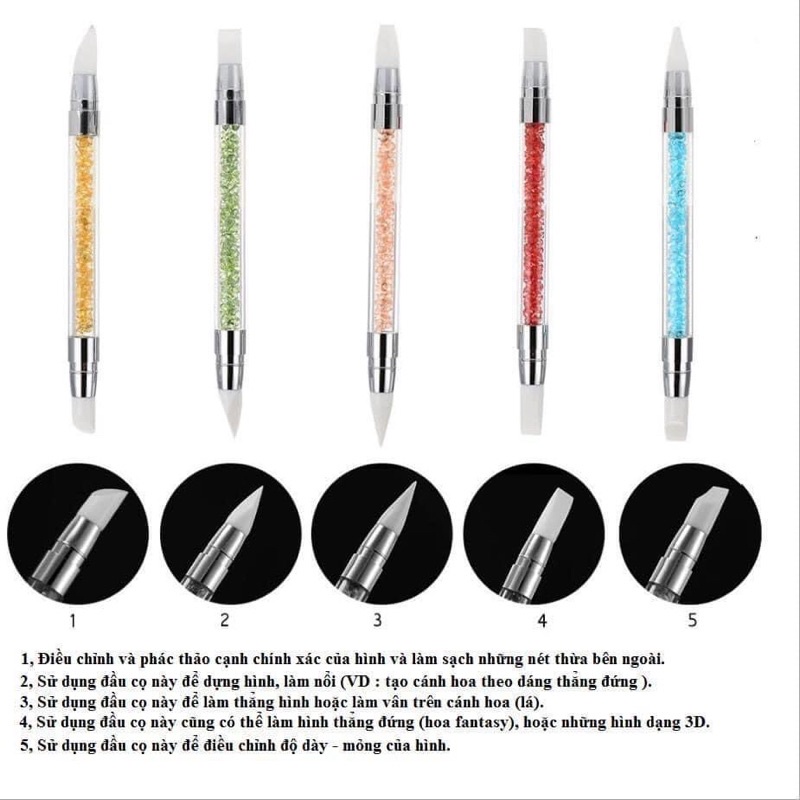 Cọ silicon 2 đầu đa năng- Cọ silicon 2 đầu đa năng là một dụng cụ trong bộ làm móng được dùng để nặn hoa bột, tráng gương, dập foil,...