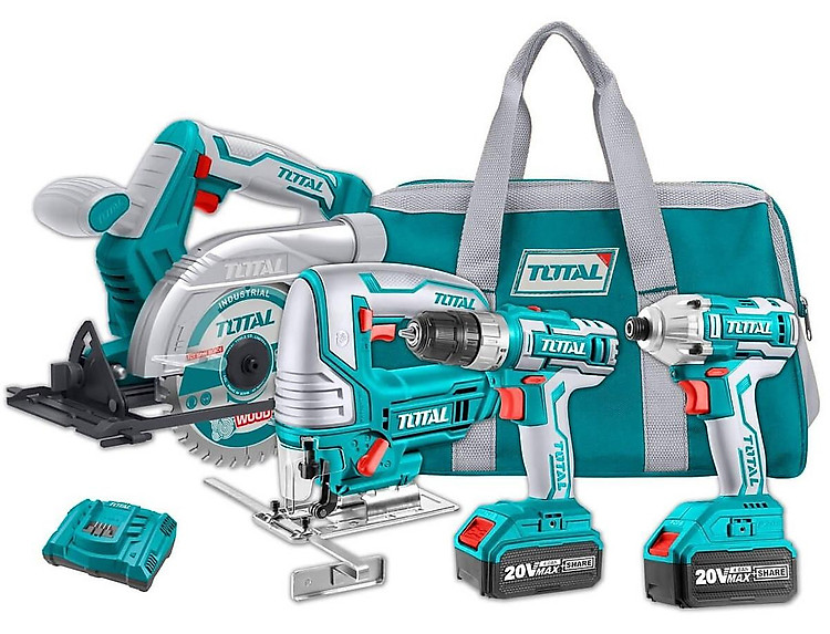 Giới thiệu BỘ COMBO 4 MÁY GỒM CƯA ĐĨA TRÒN TSLI1401, CƯA LỌNG TJSLI6508, SIẾT VÍT TIRLI2017 VÀ KHOAN TDLI20051 DÙNG PIN 20V 45NM TOTAL TCKLI20104 - HÀNG CHÍNH HÃNG