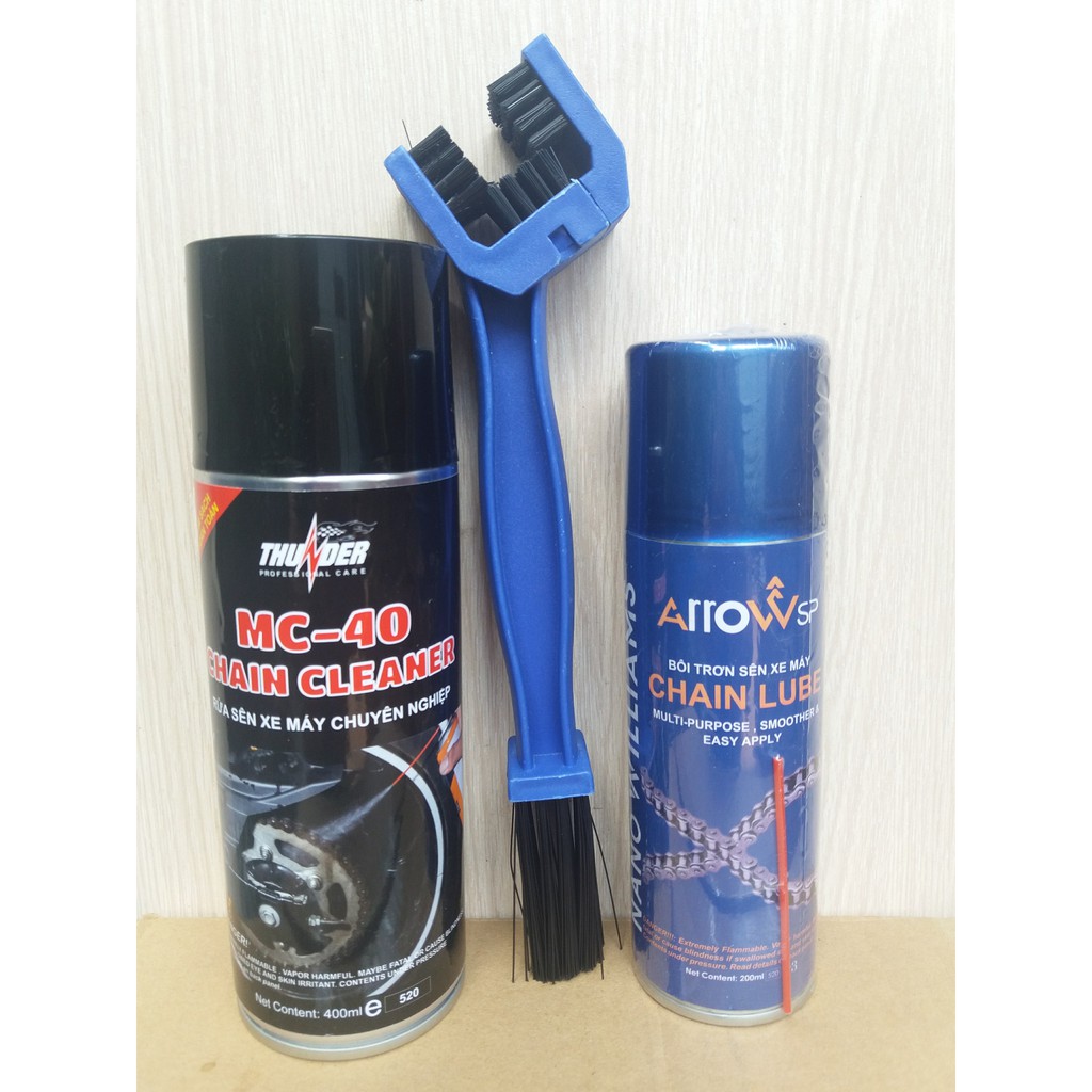 Bộ vệ sinh làm sạch và bôi trơn sên ( xích ) xe máy NBC15: Thunder MC-40 + Cọ sên + Arrow Chain-Lube 200ml