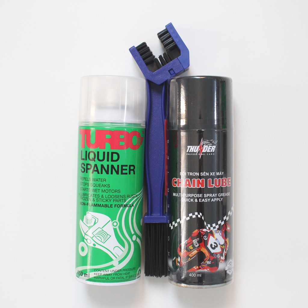 Bộ vệ sinh làm sạch và bôi trơn sên ( xích ) xe máy NBS12: Turbo Liquid+ Cọ Chà Sên 3D + Thunder Chain Lube 400ml