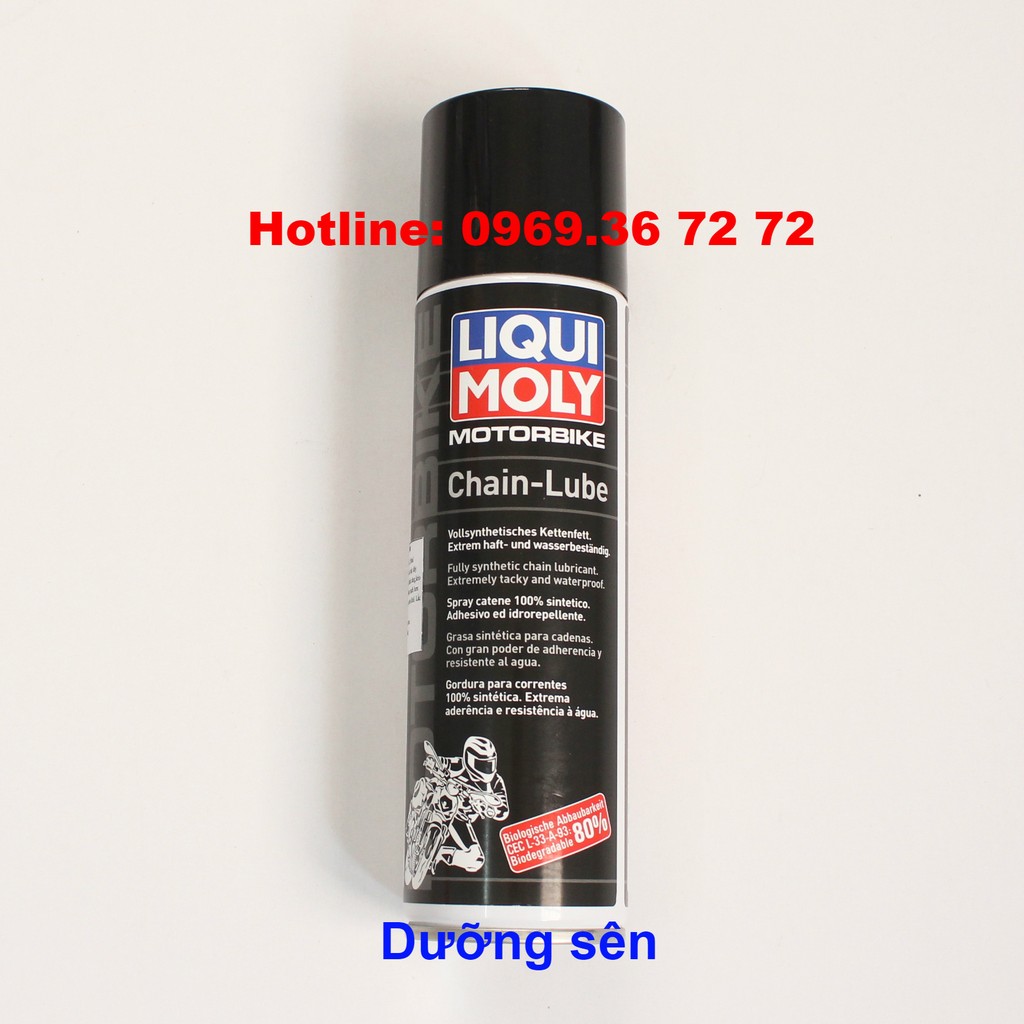 SP.3 - Liqui Moly Motorbike Chain-Lube là nhớt bôi trơn chịu áp lực cao Fully Synthetic, một sản phẩm chất lượng của tập đoàn nhớt Liqui Moly danh tiếng hàng đầu nước Đức. Liqui Moly Chain-Lube có tác dụng cực kỳ hiệu quả trong việc bôi trơn sên(xích) của các loại xe số, đặc biệt là xe mô tô phân khối lớn, giúp sên chịu được áp lực cao và bảo vệ xích tối ưu.