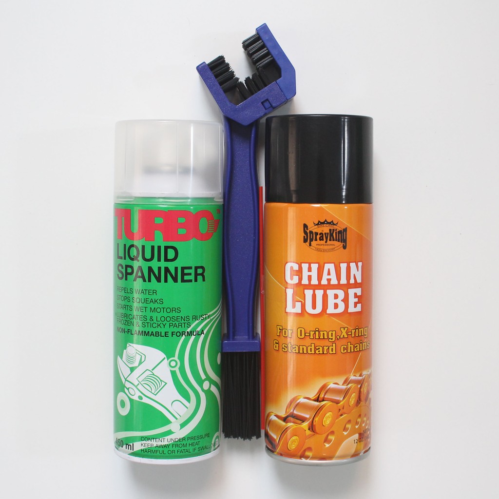 Bộ vệ sinh làm sạch và bôi trơn sên ( xích ) xe máy VNA03: Turbo + Cọ sên + SprayKing Chain-Lube