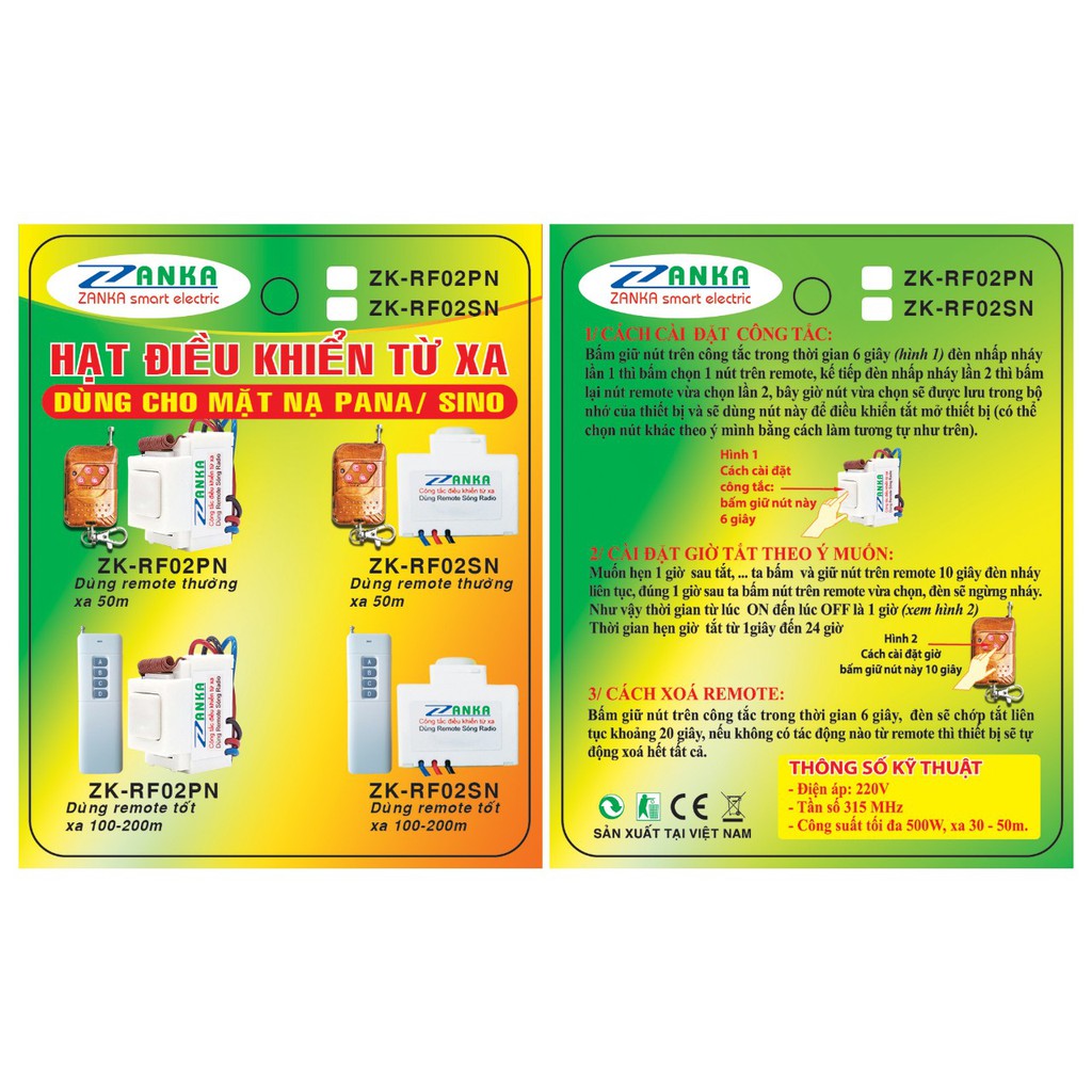 Mô tả hạt công tắc điểu khiển từ xa, hạt công tắc âm tường ZK-RF02PNDùng kết hợp remote để điểu khiển thiết bị điện: đèn, máy bơm nước, quạt,...
