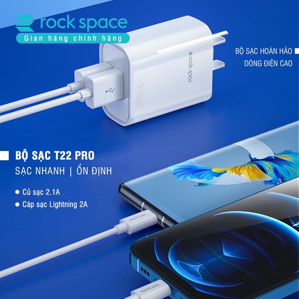 Giới thiệu Bộ củ cáp sạc nhanh iphone Rockspace T22 pro 2 cổng sạc nhanh không nóng máy, chính hãng bảo hành 12 tháng