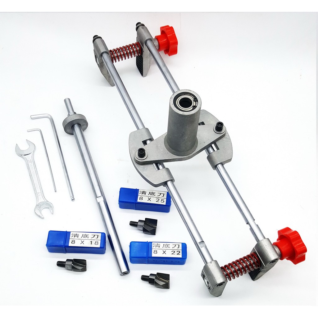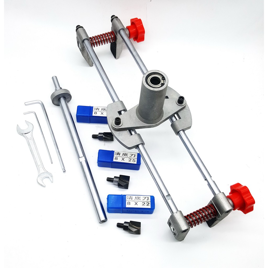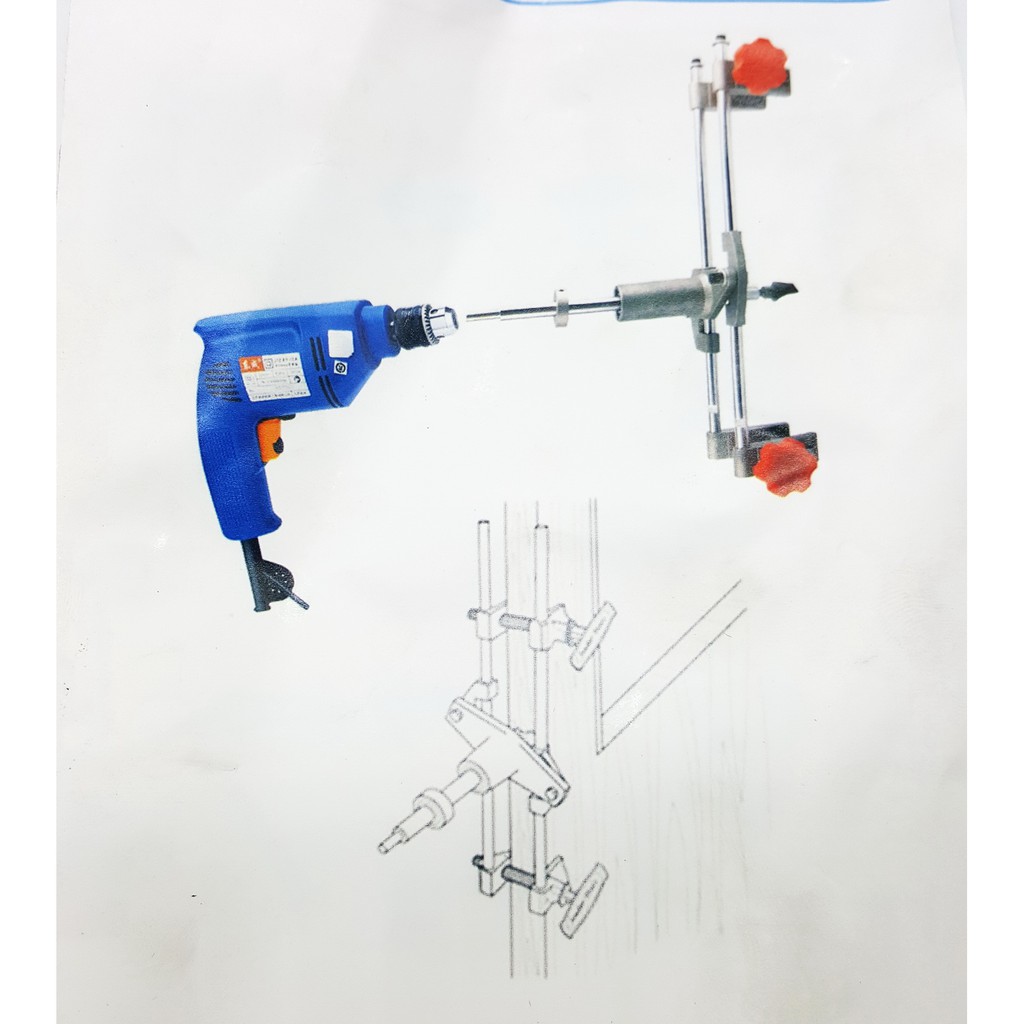 - Bộ dụng cụ đi kèm 3 mũi khoan có kích thước 18mm, 22mm, 25mm