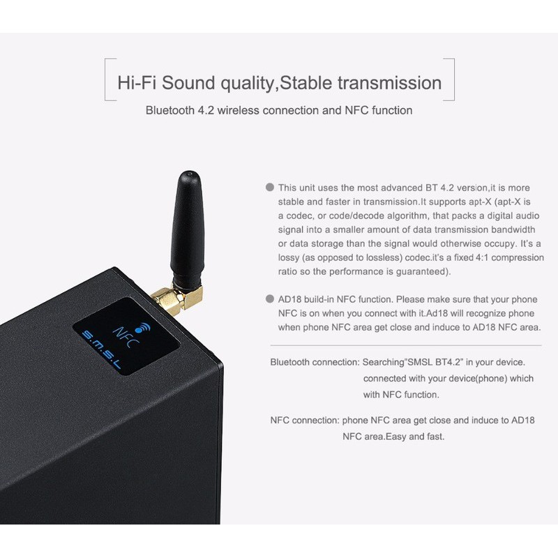 BỘ DAC GIẢI MÃ ÂM THANH HI-FI BLUETOOTH 4.2 S.M.S.L AD18TÍNH NĂNG: