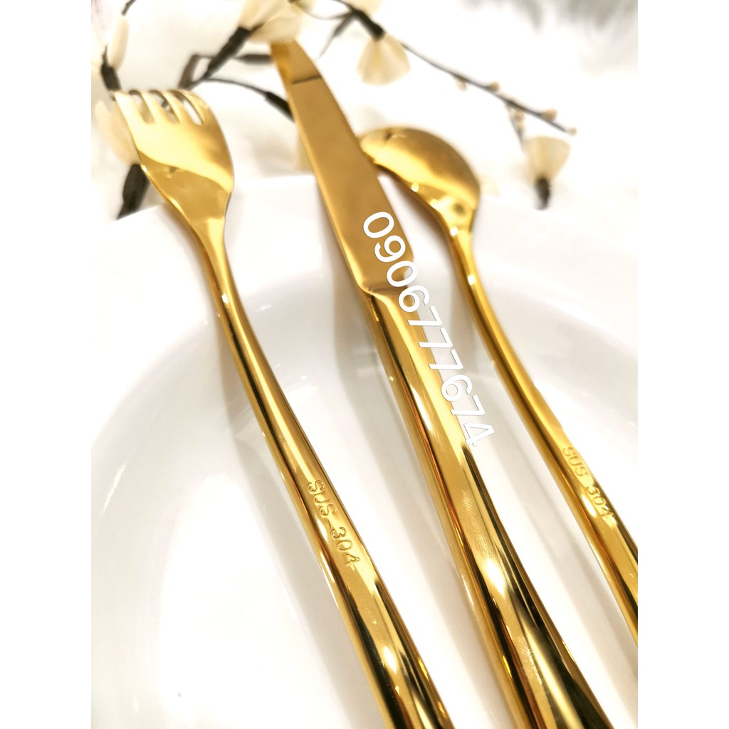 BỘ DAO MUỖNG NĨA INOX 304 XI MẠ VÀNG CAO CẤP