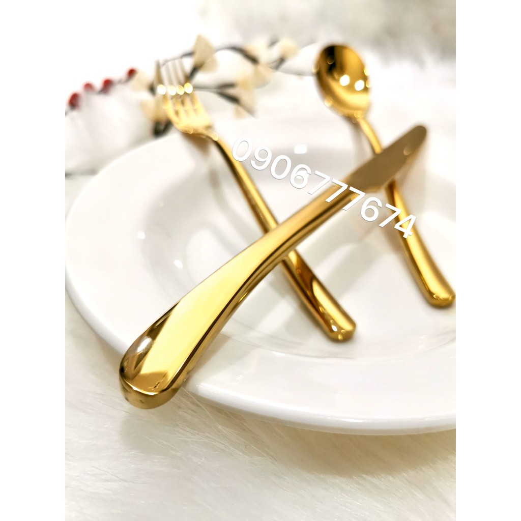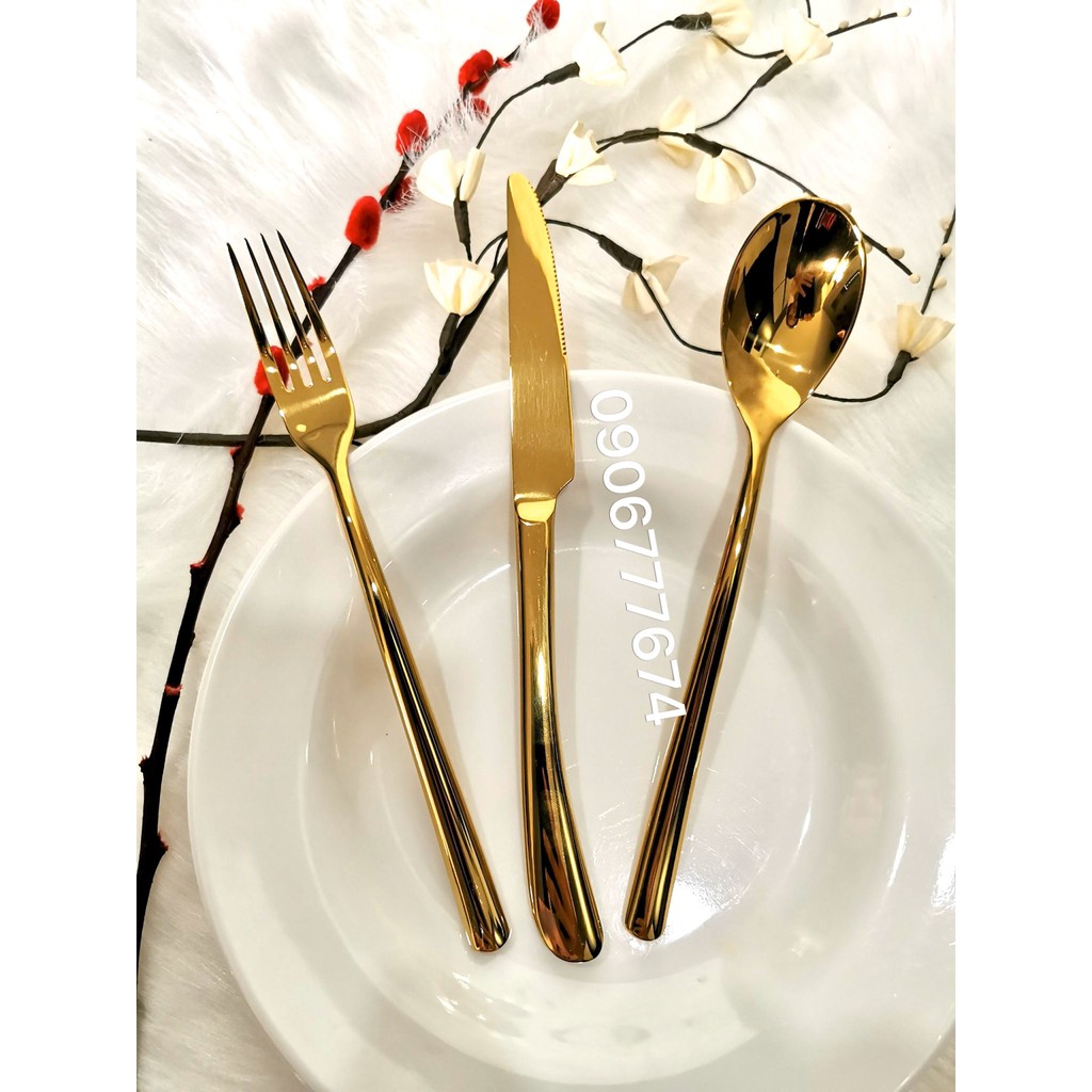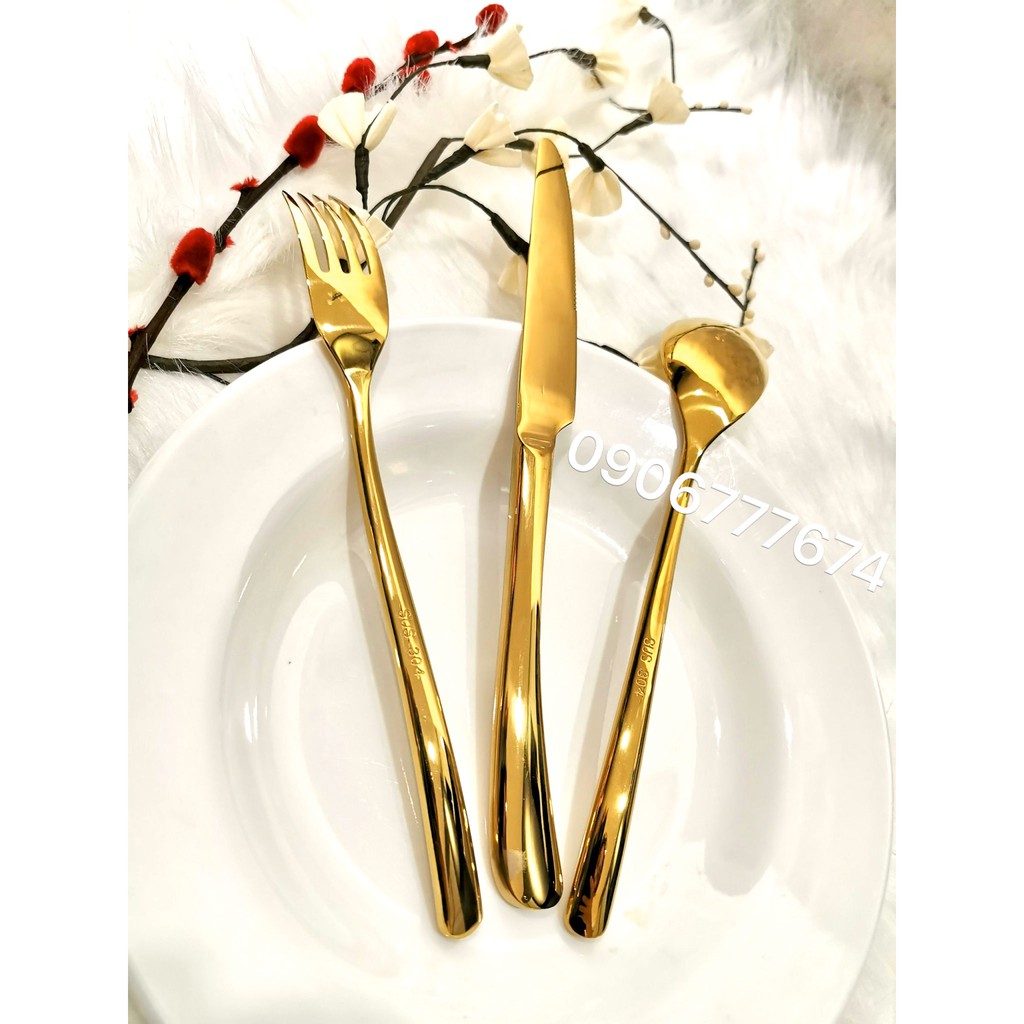 NẾU QUÝ KHÁCH HÀNG MUA HÀNG CÓ SỐ LƯỢNG MÀ SHIP CAO VUI LÒNG LIÊN HỆ SHOP ĐỂ SHOP TẠO COMBO CHO QUÝ KHÁCH GIẢM THIỂU TỐI ĐA TIỀN SHIP CHO QUÝ KHÁCH.*** Thông tin sản phẩm : BỘ DAO MUỖNG NĨA INOX 304 XI MẠ VÀNG CAO CẤP