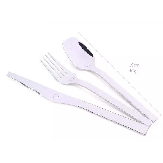Nhà cửa & Đời sống > Bộ đồ bàn ăn > Bộ dao kéo || Dao nĩa phụ kiện ăn bít tết inox 304 SSGP khắc hình mặt cười phong cách Hàn Quốc dễ thương - 19cm 40gCòn hàng