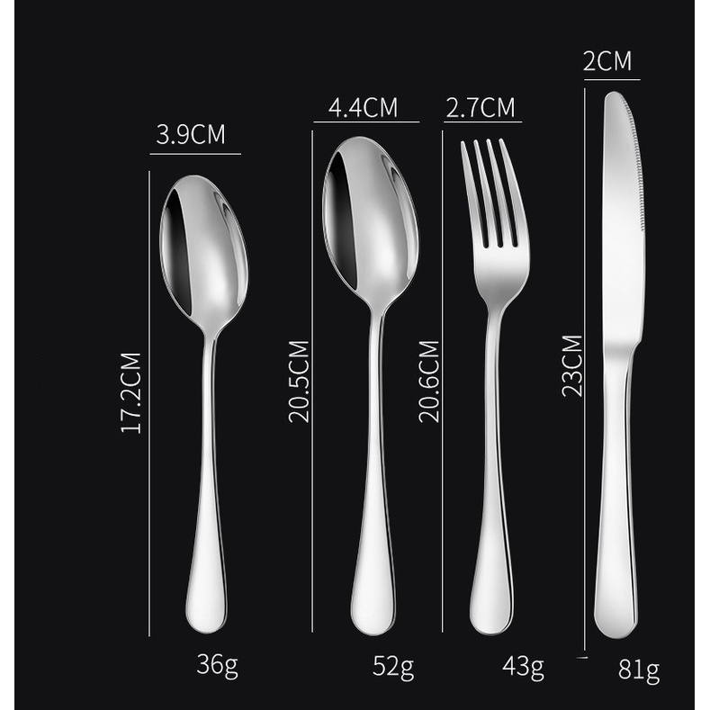 Bộ ba dùng ăn đồ tây như bít tết ,mỳ Ý gồm dao inox 201 và thìa(muỗng) nĩa(dĩa) được làm bằng chất liệu thép không rỉ cao cấp inox 304 (18/10)sẽ đem đến sự sang trọng và tinh tế trong những bữa ăn hoăc tiếp đãi khách ngoài ra các quán ăn cao cấp hay khách sạn nhà hàng thanh lịch cũng thích hợp sử dụng để khẳng định đẳng cấp .