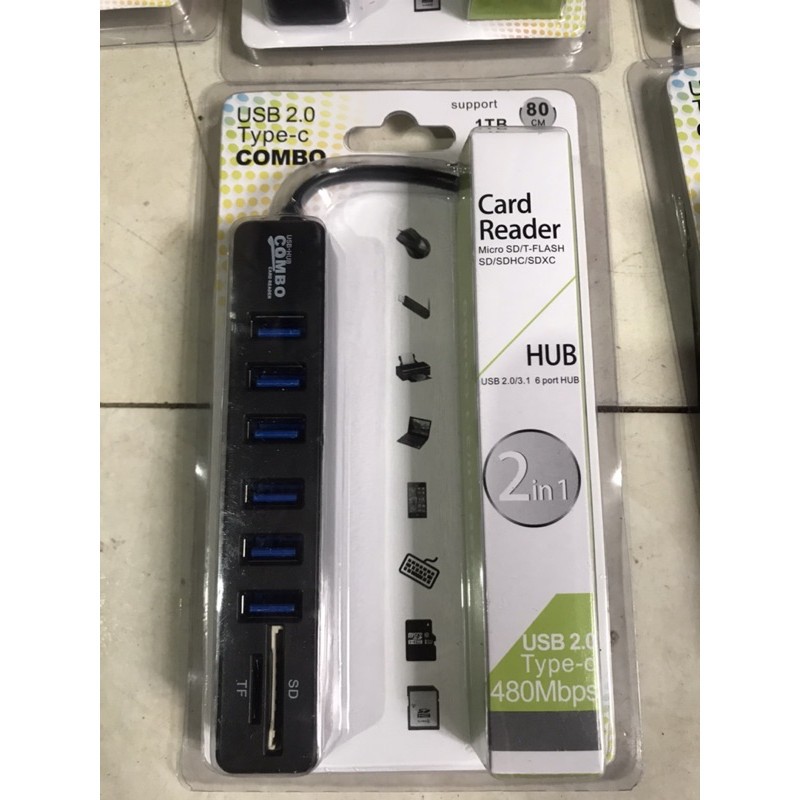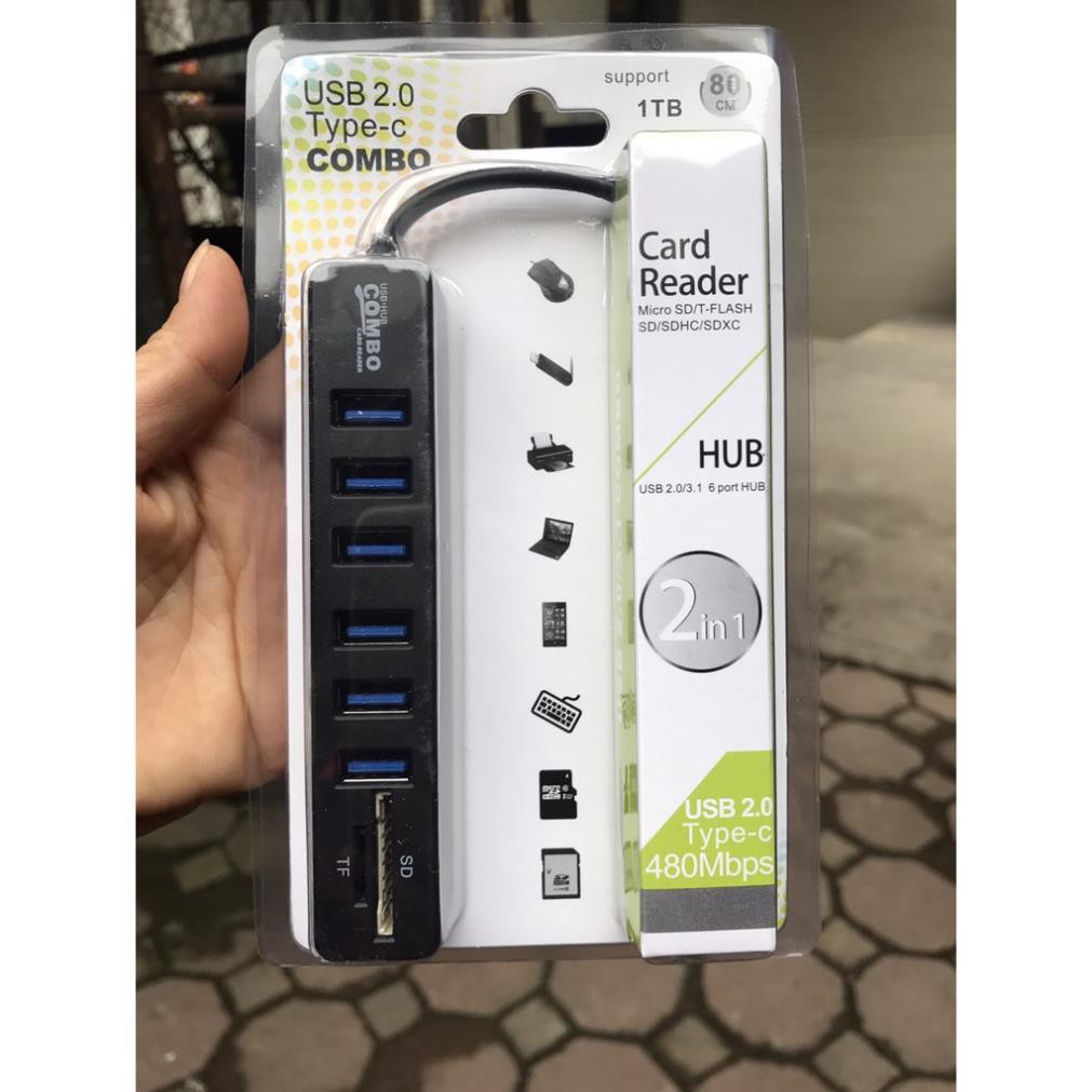 Bộ đầu dây hub cáp Chia ổ USB Từ 1 Ra 6 Cổng Usb Kèm Khe Đọc Thẻ Nhớ Chất Lượng Cao cho pc máy tính laptop thiết bị điện