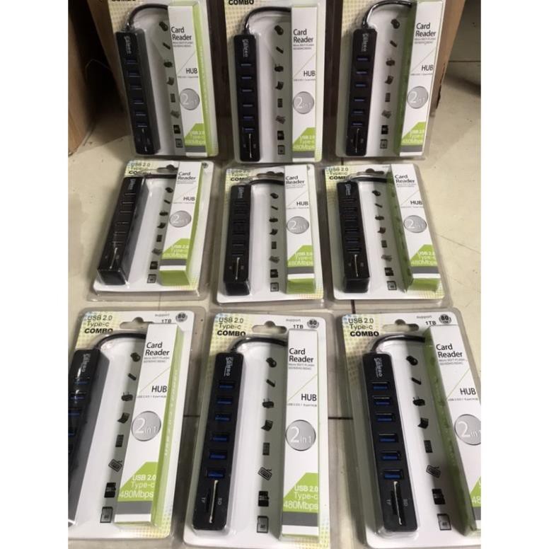 Bộ đầu dây hub cáp Chia ổ USB Từ 1 Ra 6 Cổng Usb Kèm Khe Đọc Thẻ Nhớ cao cấp cho pc máy tính laptop thiết bị điện