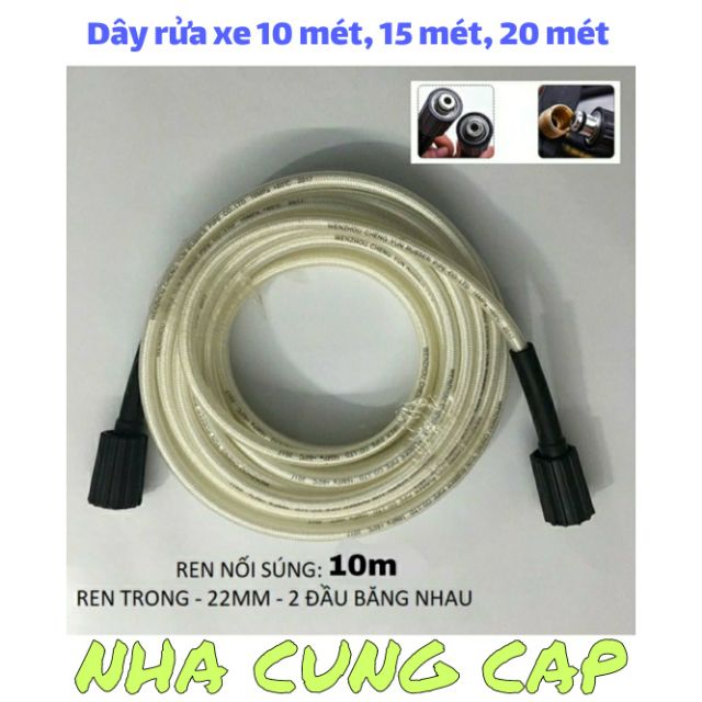 10m Ống dây rửa xe cho máy bơm xịt rửa áp lực cao S2_Ren trong 22mmThương hiệu: Taiwain