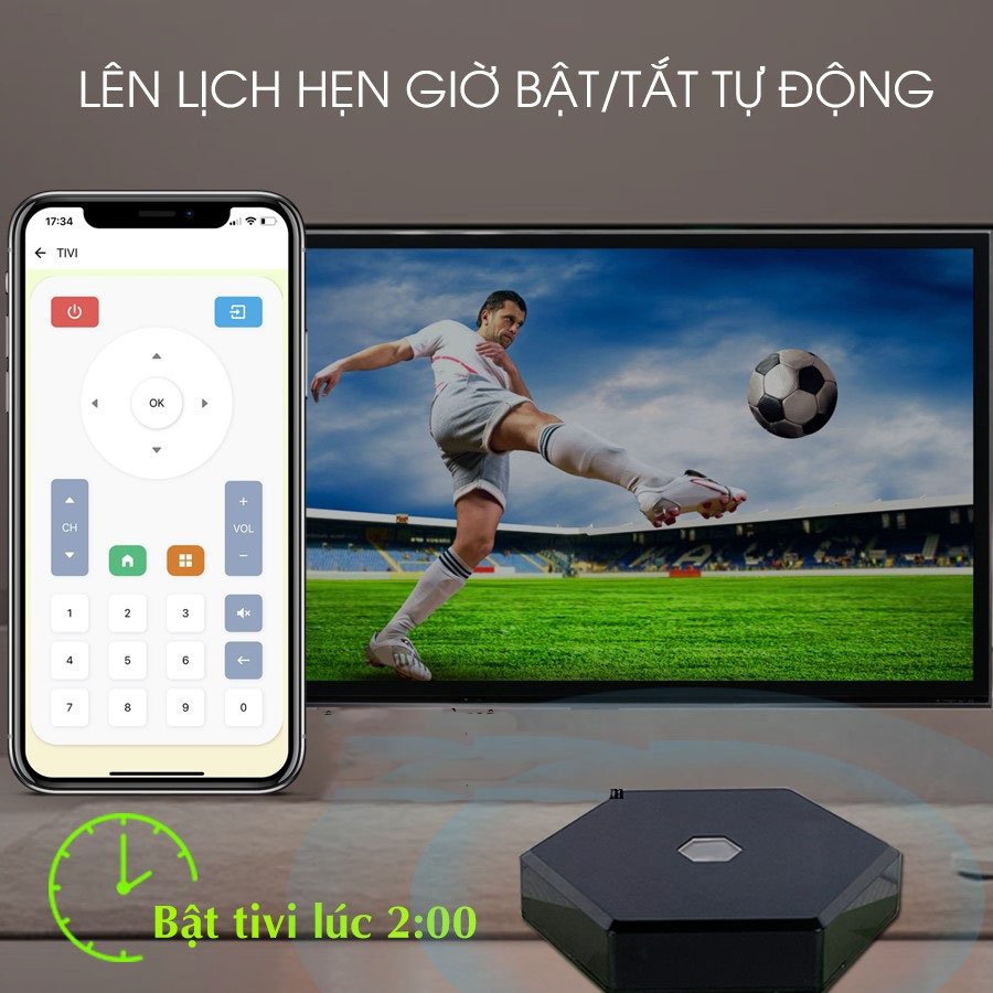 - Hẹn giờ bật/ tắt hoàn toàn tự động cho các thiết bị điện như: tivi, điều hoà, đầu kỹ thuật số, quạt,...