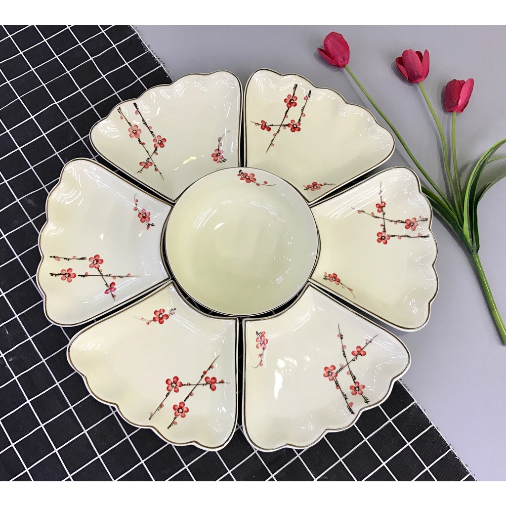 7 món gồm : 6 cánh đĩa và 1 bát tô ở giữa