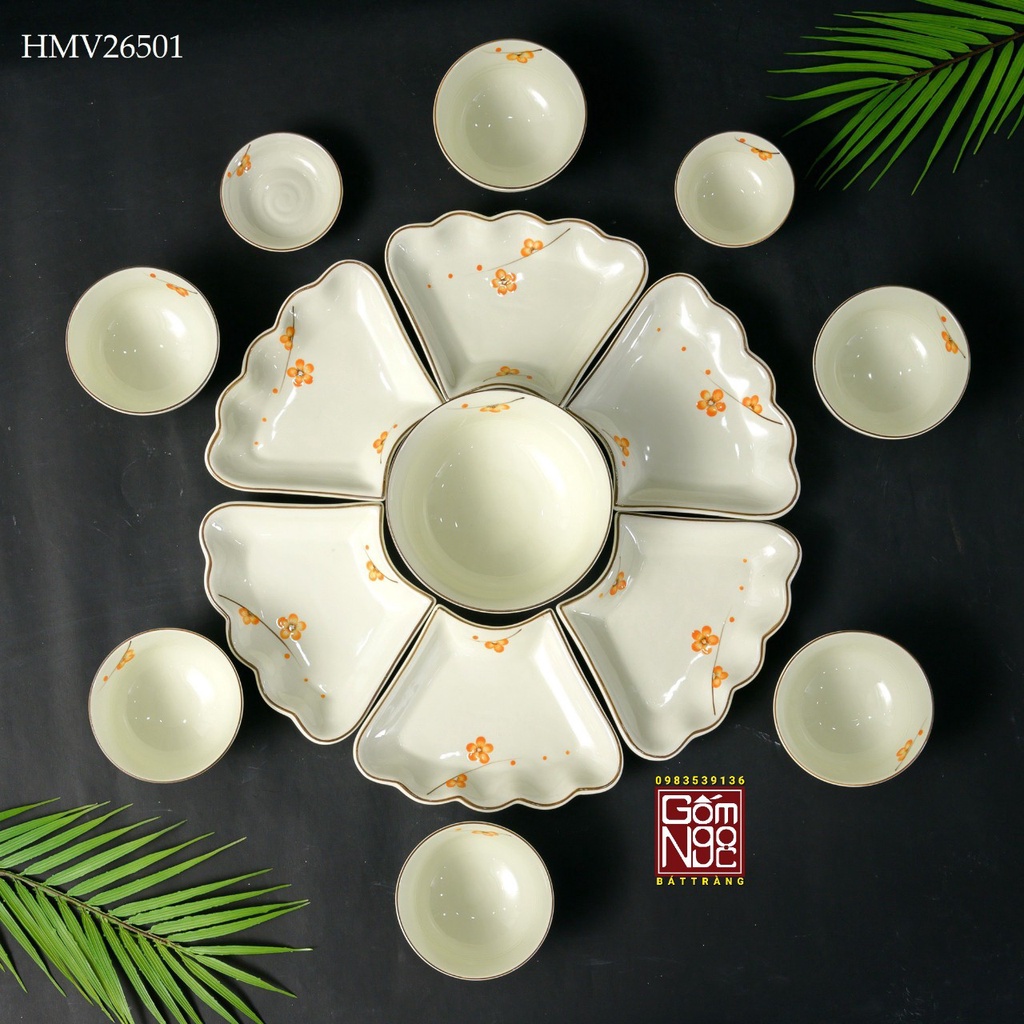 BỘ ĐỒ ĂN HOA MẶT TRỜI đường kính 58CM, GỐM SỨ BÁT TRÀNG, BÁT ĐĨA, SET ĐỒ ĂN CAO CẤP, đồ thờ cúng