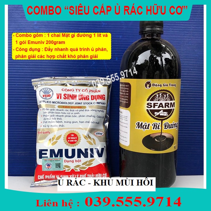 Combo bộ đôi chế phẩm emuniv và Mật rỉ đường là sự kết hợp hoàn hảo sản phẩm dùng để đẩy nhanh quá trình ủ phân