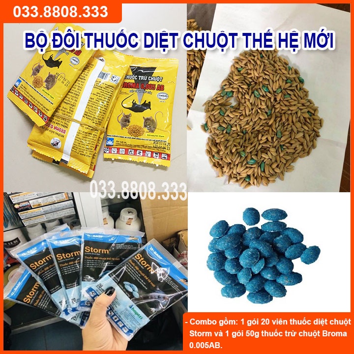 BỘ ĐÔI DIỆT CHUỘT THẾ HỆ MỚI GỒM KẸO CHUỘT ( 20 VIÊN ) VÀ THÓC CHUỘT BROMA 50G