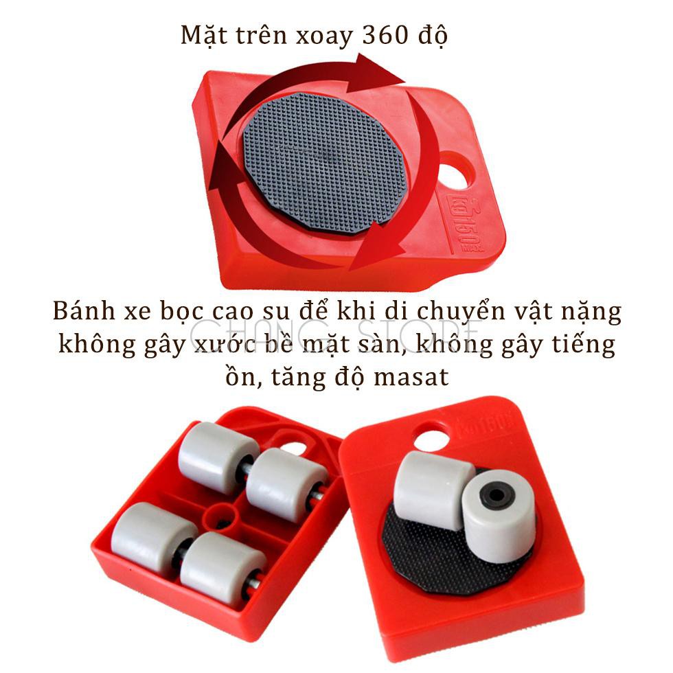 Đặt 4 bánh xe vào 4 góc vừa nâng sau đó là có thể nhẹ nhàng đẩy đồ vật đến chỗ cần di chuyển.