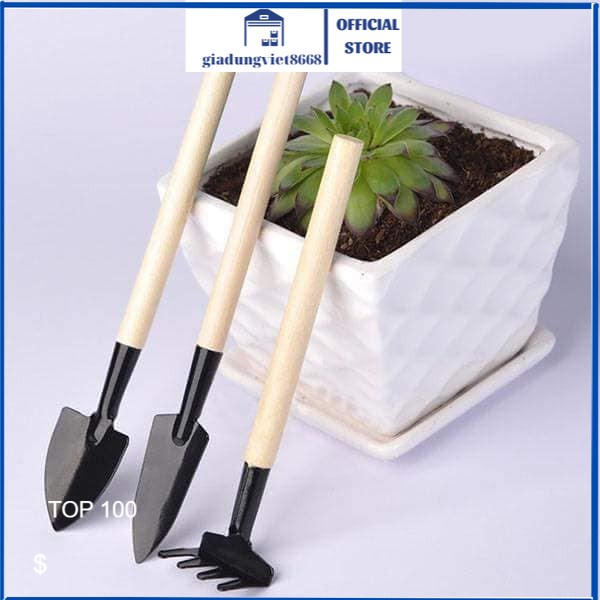 Bộ dụng cụ mini làm vườn 3 món gọn nhẹ làm vườn gồm; 1 xẻng, 1 xúc, 1 cào