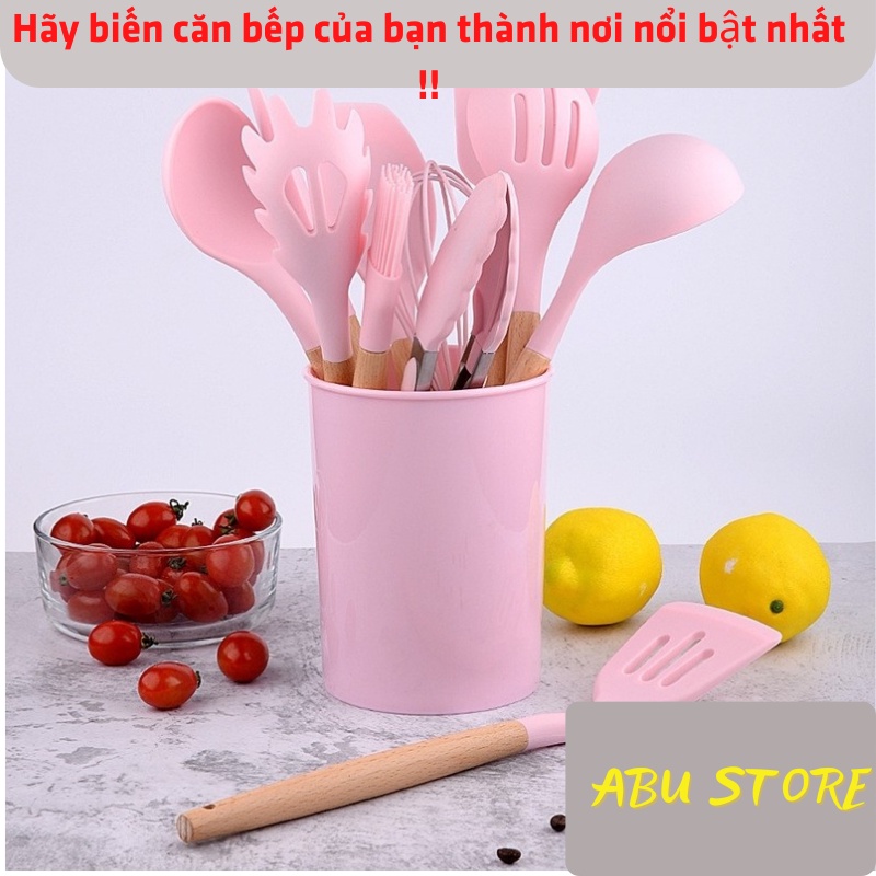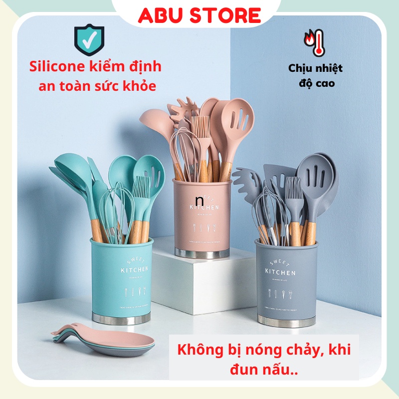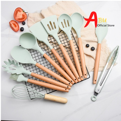 Bộ dụng cụ nhà bếp Kitchenware silicon chống dính chịu nhiệt cao bộ nấu ăn làm bánh 11 món ABUSTORETên: Bộ dụng cụ nhà bếp bằng gỗ 11 món