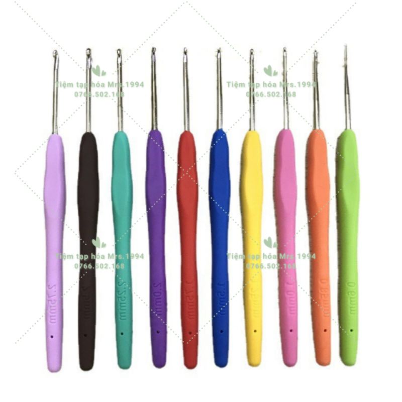 Dụng cụ móc len như hình - Shop giao đúng chỉ số của đầu móc (ngẫu nhiên màu cán)