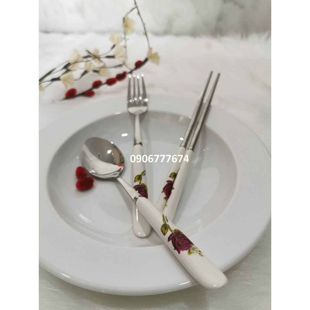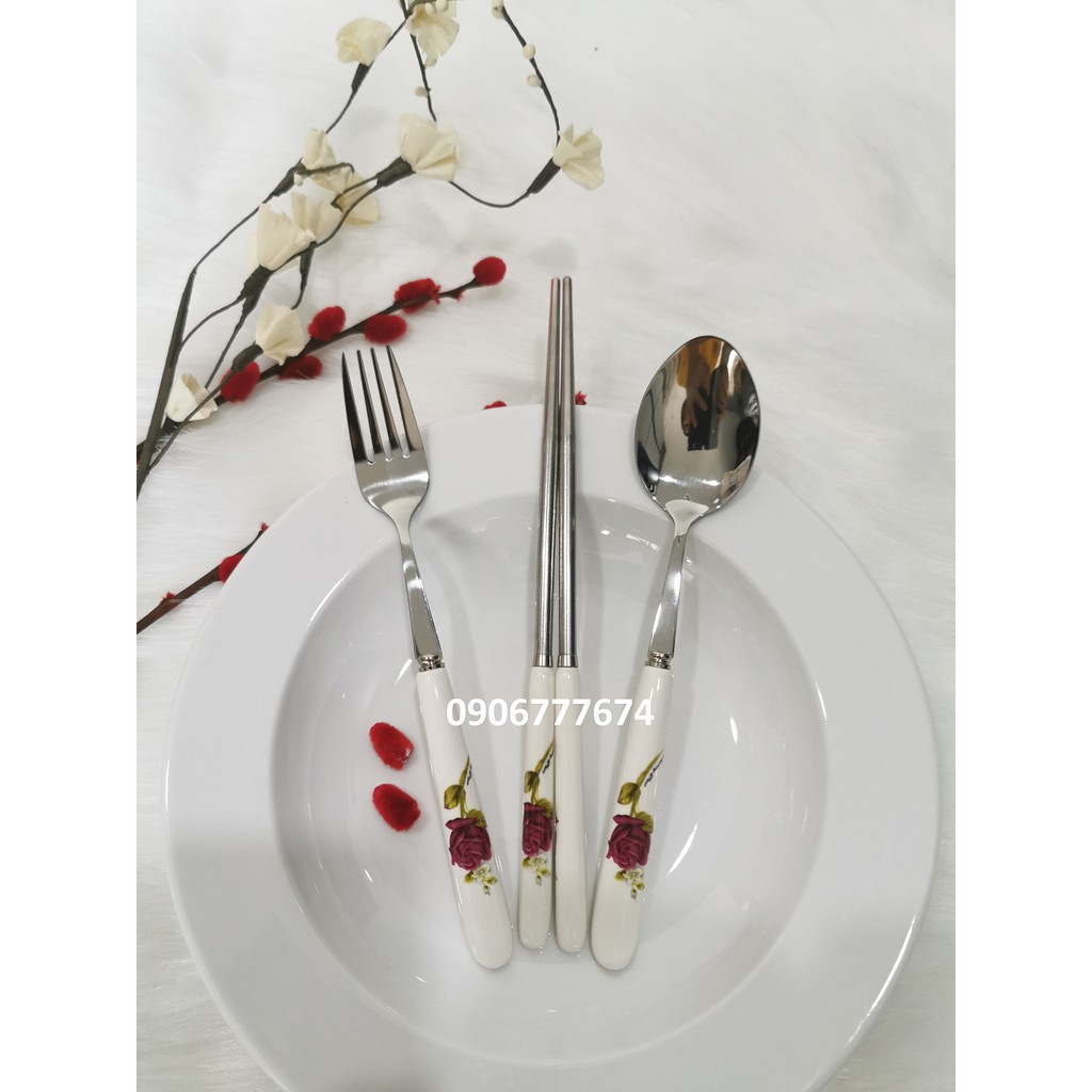 NẾU QUÝ KHÁCH HÀNG MUA HÀNG CÓ SỐ LƯỢNG MÀ SHIP CAO VUI LÒNG LIÊN HỆ SHOP ĐỂ SHOP TẠO COMBO CHO QUÝ KHÁCH GIẢM THIỂU TỐI ĐA TIỀN SHIP CHO QUÝ KHÁCH.***BỘ ĐŨA MUỖNG NĨA INOX KẾT HỢP SỨ HÀN QUỐC (Hình shop tự chụp)