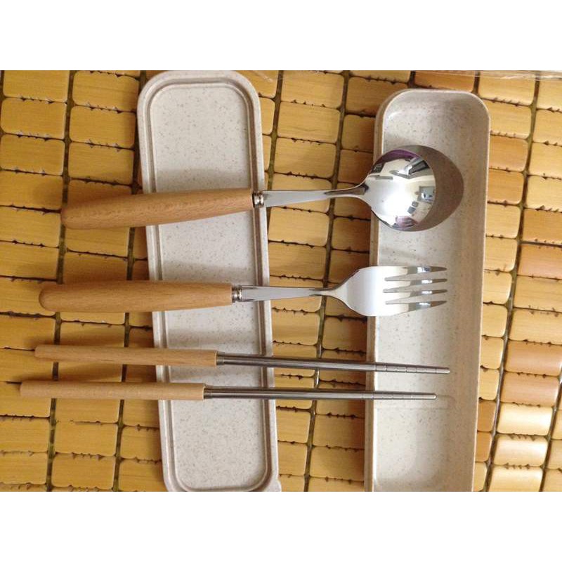 - Bộ đũa thìa dĩa inox kèm hộp lúa mạch được làm từ gỗ sồi kết hợp với inox chống gỉ và được để trong 1 cái hộp lúa mạch xinh xinh.