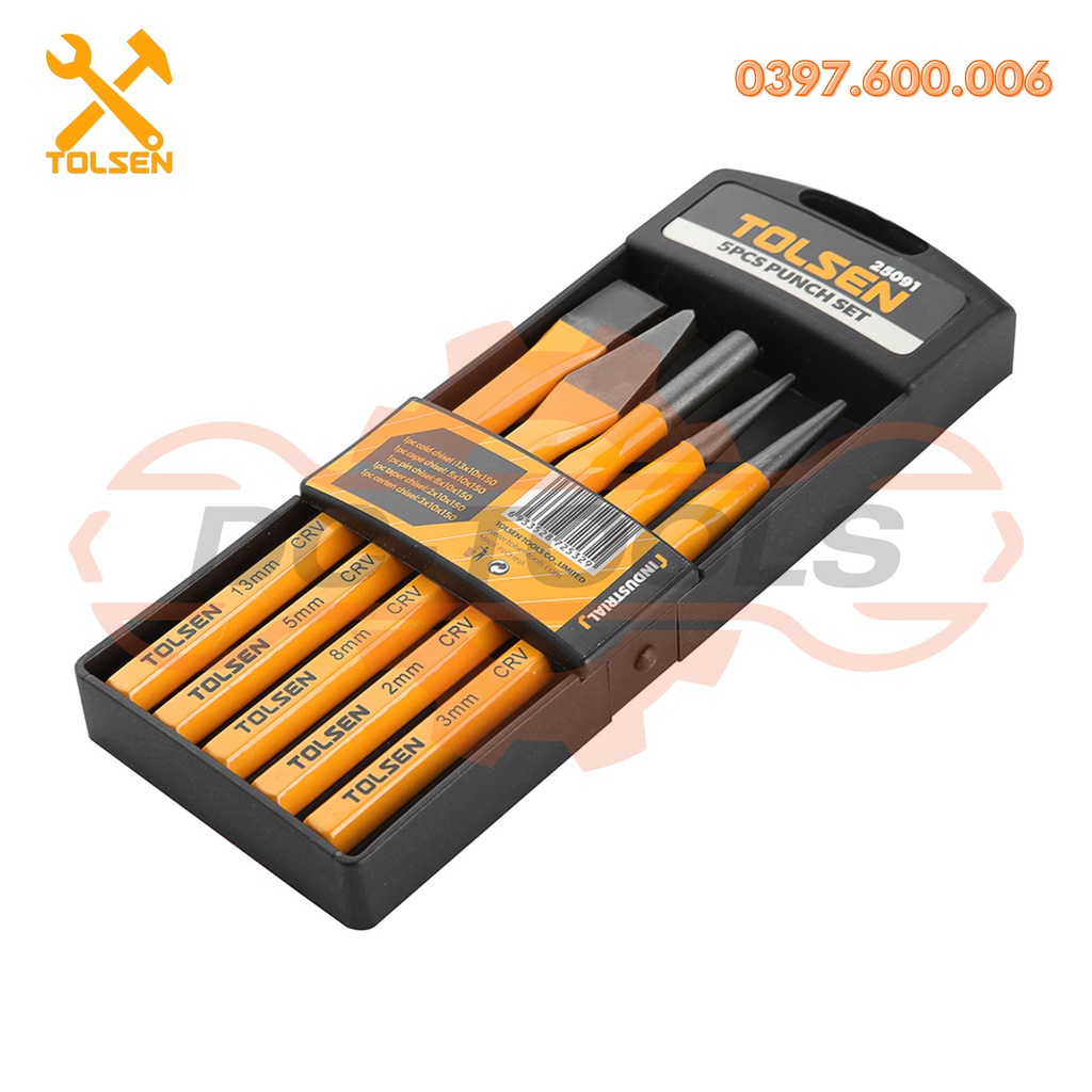 Giới thiệu BỘ ĐỤC CƠ KHÍ 5 CÂY TOLSEN 25091 Thép vanadi Chrome; HRC56-62, SƠN TĨNH ĐIỆN DC-TOOLS