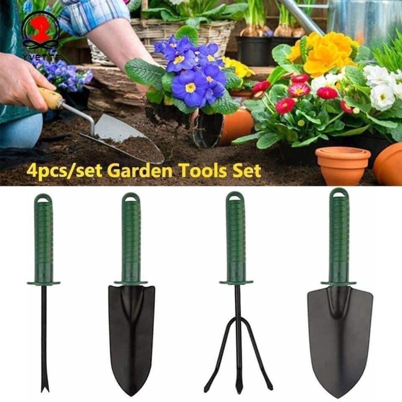 ✔ Bộ dụng cụ làm vườn 4 món gồm 2 xẻng, 1 xúc, 1 cào, sử dụng tiện lợi, kiểu dáng đẹp, nhỏ gọn.