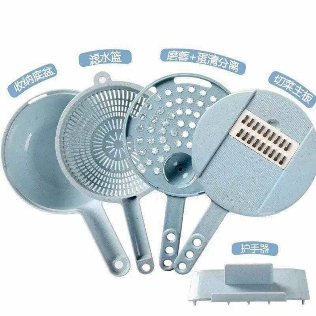 - Bộ sản phẩm bao gồm : thau - rổ - giá mài nhuyễn - khoang tách trứng - 4 kiểu lưỡi bào khác nhau.