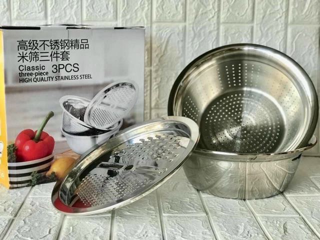 🔥🔥🔥BỘ DỤNG CỤ NẠO RAU INOXBộ bao gồm : 01 Mặt nạo nhiều kiểu, 01 Rổ inox, 01 Chậu inox 100% cao cấp dày dặn