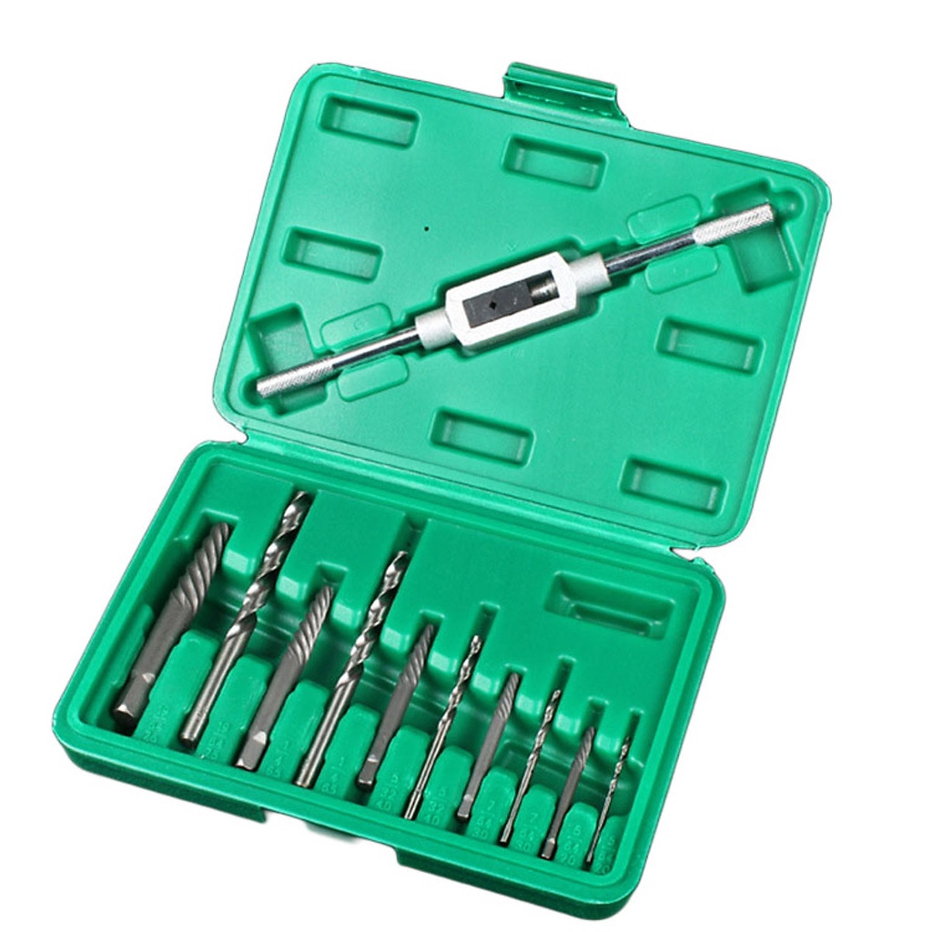 - Bộ dụng cụ nhổ bu lông ốc vít gãy chuyên dụng với 11 chi tiết bao gồm 5 mũi khoan 5 mũi lấy vít gãy các cỡ và 1 tay quay được đựng trong hộp chuyên nghiệp. Các mũi khoan được định cỡ với mũi nhổ khiến việc lựa chọn mũi khoan nhanh chóng hơn. Các mũi nhổ bu lông có bước xoắn dài và sắc cạnh chống nở bulong rất tốt.