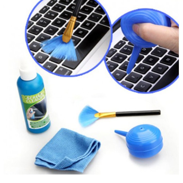 BỘ DỤNG CỤ VỆ SINH LAPTOP 4 MÓN, combo làm sạch bàn phím màn hình máy vi tính tivi, cleaning kit set cleaner keyboard