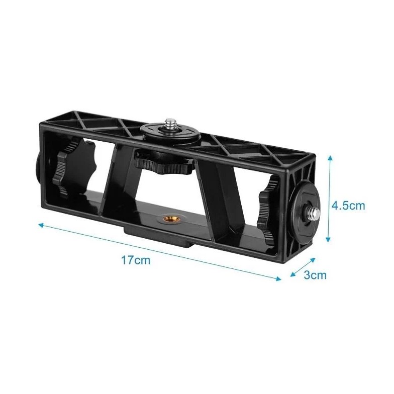 Bộ giá đỡ điện thoại gắn tripod livestream 3 máy được làm bằng chất liệu nhựa ABS chắc chắn, với lỗ ren 1/4 là chuẩn ốc nối phổ biến của hầu hết các tripod giá đỡ ba chân hiện nay. Sản phảm BF-103 có thể kết hợp dễ dàng khung trụ với các giá đỡ 3 chân sẵn có, trụ nối cũng tương thích với các loại kẹp điện thoại, kẹp iPad thông dụng hay các thiết bị chuẩn ốc 1/4 như hiện nay.THÔNG SỐ KỸ THUẬT: