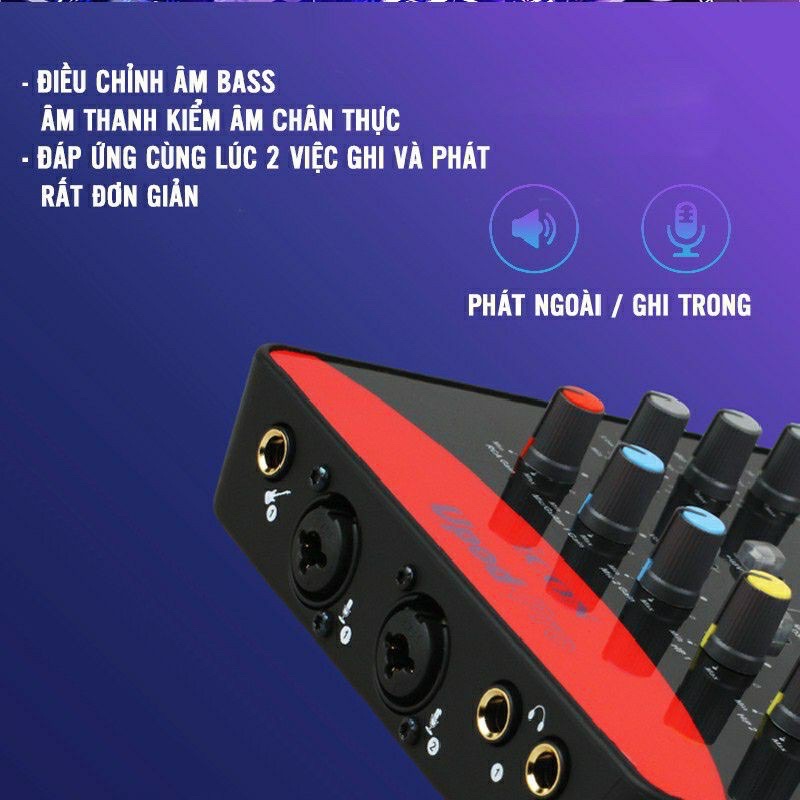 - Có 72 hiệu ứng độ vang, 3 nút chỉnh giọng, 2 lỗ cắm tai nghe, 2 lỗ out ra loa vi tính và monitor cao cấp.
