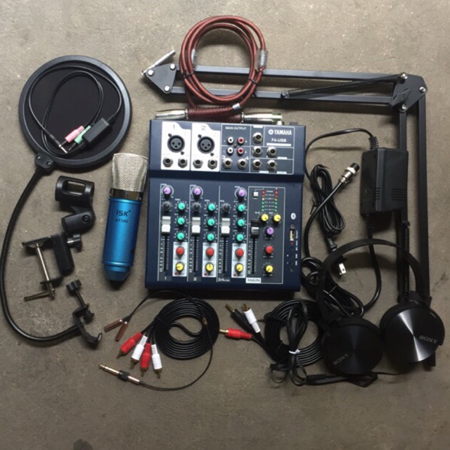 Chọn Bộ Hát Thu Âm Karaoke Mic ISK AT100-Bàn trộn Mixer F4 Co bluetooth và usb chân+lọc