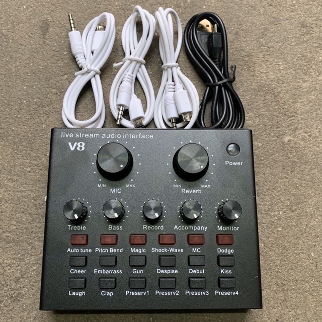 Sound card thu âm V8 là sản phẩm card âm thanh tương thích với nhiều thiết bị như smartphone, laptop, pc, máy tính bảng. Với tính năng làm méo giọng hát, thành giọng trẻ em, người già, Khả năng chèn các hiệu ứng âm thanh vào các đoạn thu như tiếng vỗ tay, tiếng hò reo, nhạc cổ vũ, tiếng chim kêu... với 12 hiệu ứng âm thanh, sẽ đem lại cho bạn trải nghiệm thu âm vô cùng thú vị.