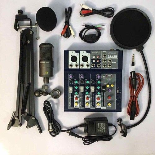 Giới thiệu Bộ Combo Micro Thu Âm Takstar sm 8b + Soundcard Mixer F4 Full phụ kiệnĐây là bộ thu âm mang tính chuyên nghiệp cao với dàn Mixer có 2 cổng Canon kết nối vào Micro và 4 cổng kết nối Jack 6mm vào các nhạc cụ khác. Chất âm mạnh mẽ của Mixer và cấu tạo như bàn chỉnh nhạc chuyên nghiệp giúp bạn hoàn toàn làm chủ âm thanh theo sở thích.