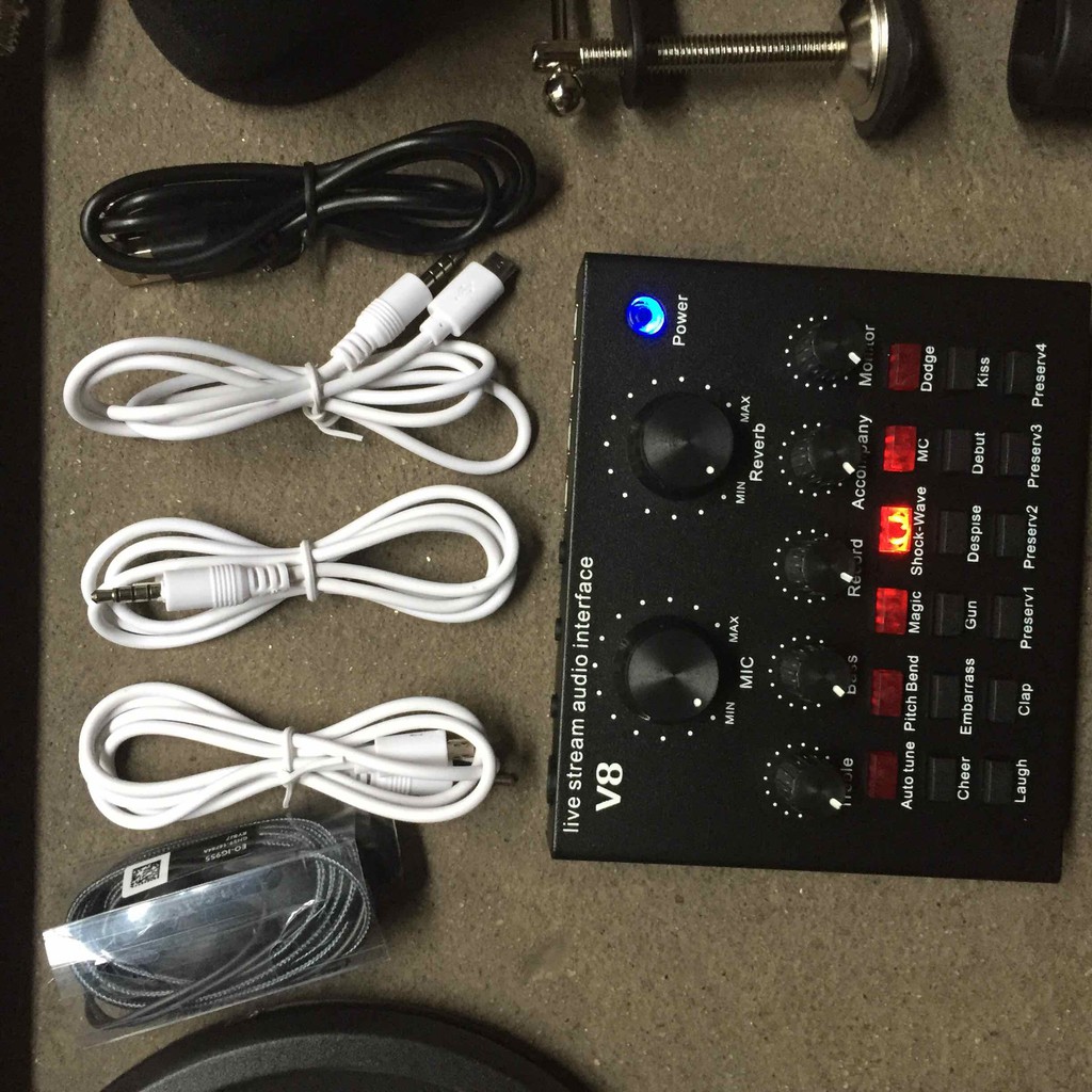 sound card v8 và dây kết nối đầy đủ