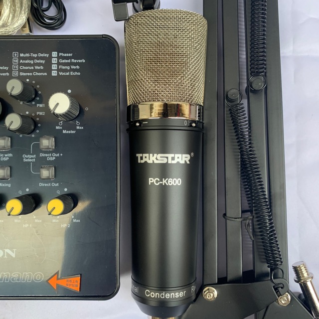 Trọn bộ Combo Micro thu âm Takstar PC-K600 + Sound Card ICON Upod nano là một bộ micro thu âm chất lượng vượt trội hỗ trợ tốt việc hát karaoke, hát live chuyên nghiệp ngay tại nhà mà không cần phải đến phòng thu. Bộ sản phẩm Micro thu âm cao cấp đang được rất nhiều khách hàng tin tưởng và sử dụng, bởi vì không chỉ sở hữu chất lượng âm thanh cực tốt mà giá cực rẻ khi mua cả bộ combo quý khách sẽ tiết kiệm rất nhiều chi phí. Bên cạnh đó, các phụ kiện đi kèm kết nối đơn giản tương thích với nhau phục vụ tốt quá trình hát karaoke, livestream trên mang xã hội của bạn được thuận tiện nhất.Ưu điểm nổi bật khi chọn mua gói combo:– Kinh nghiệm mua micro thu âm của những khách hàng trước là đầu tư một gói combo micro thu âm vừa đỡ tốn thời gian vừa tiết kiệm chi phí.
