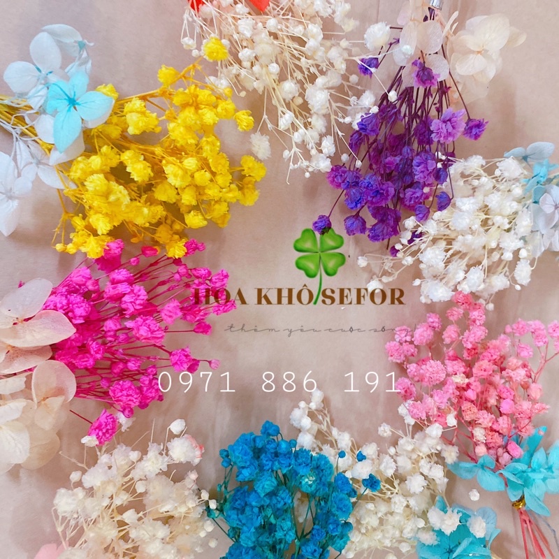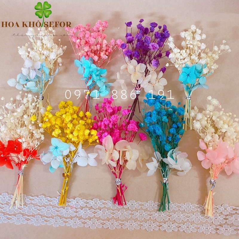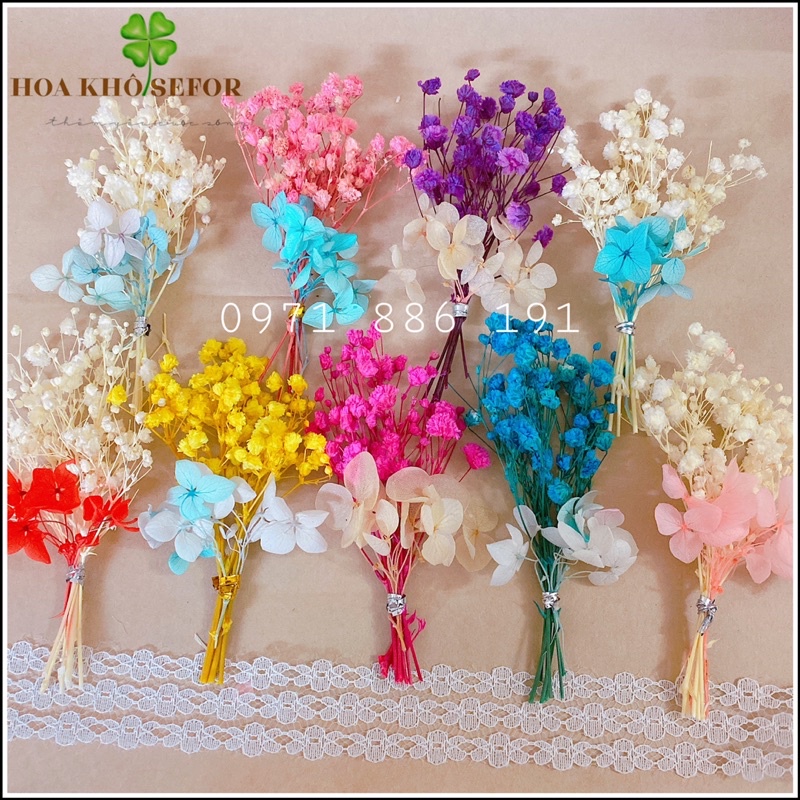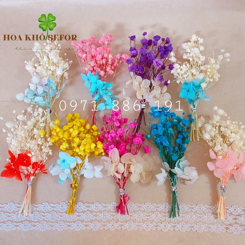 Bó hoa baby mini mix cẩm tú cầu khô phụ kiện trang trí, chụp ảnh, quà tặng...