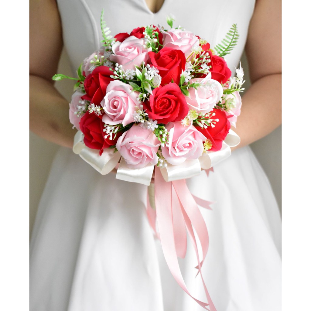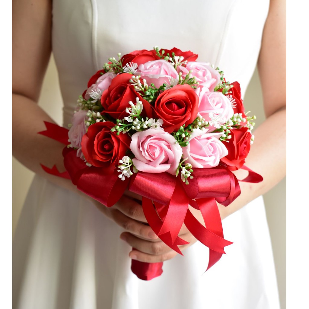 Nhà cửa & Đời sống > Trang trí nhà cửa > Hoa trang trí || BÓ HOA CƯỚI CẦM TAY CÔ DÂU HOA HỒNG SÁP MÀU ĐỎ VÀ HỒNG, TẶNG KÈM HOA CÀI ÁO CHÚ RỄCòn hàng
