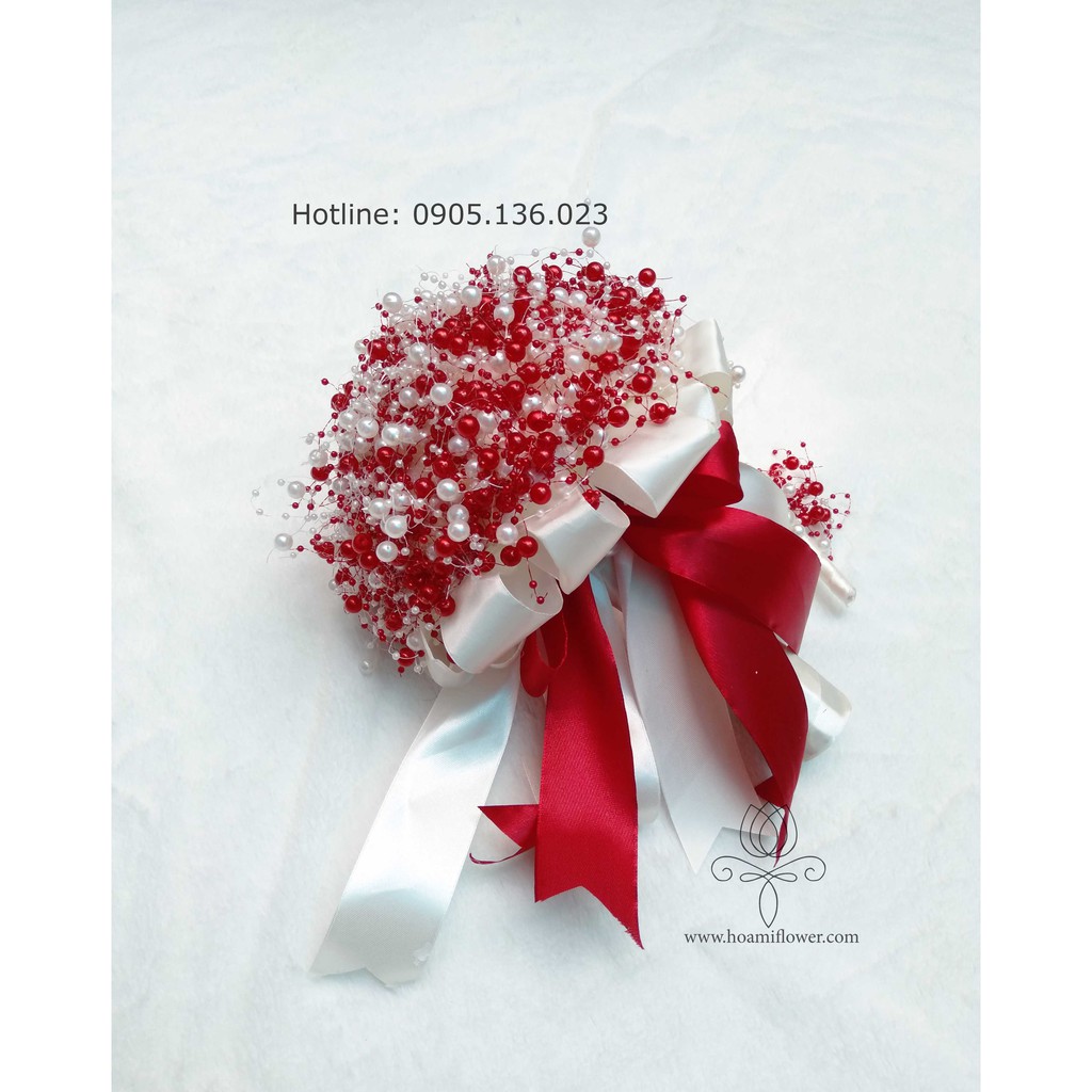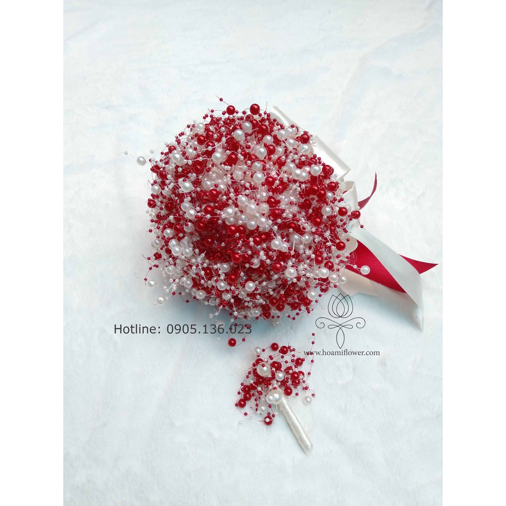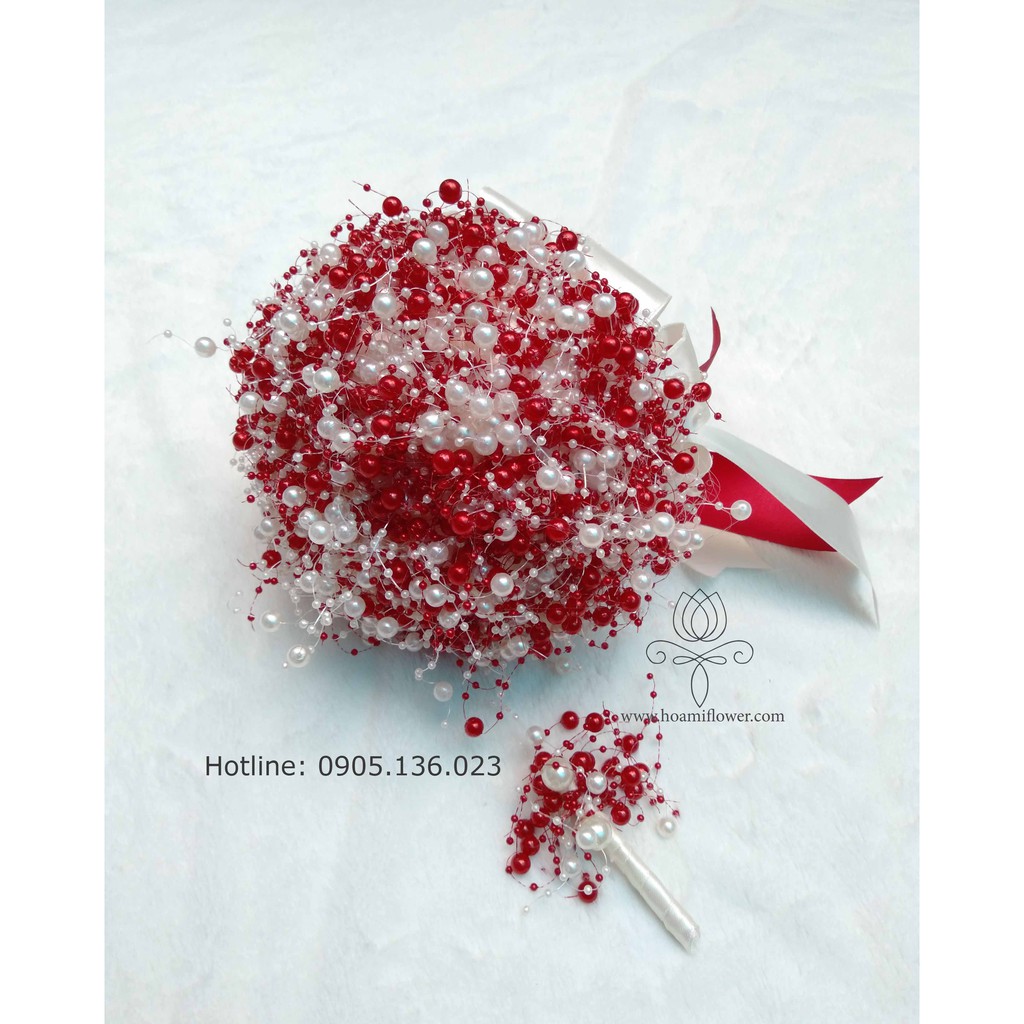 BÓ HOA CƯỚI CẦM TAY CÔ DÂU KẾT CƯỜM HẠT CHÂU MÀU ĐỎ VÀ MÀU KEM PHONG CÁCH HIỆN ĐẠIHoa cưới cầm tay cô dâu kết hạt cườm xinh xắn, rẻ đẹp nhưng sang trọng