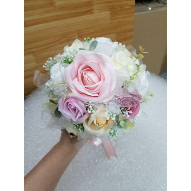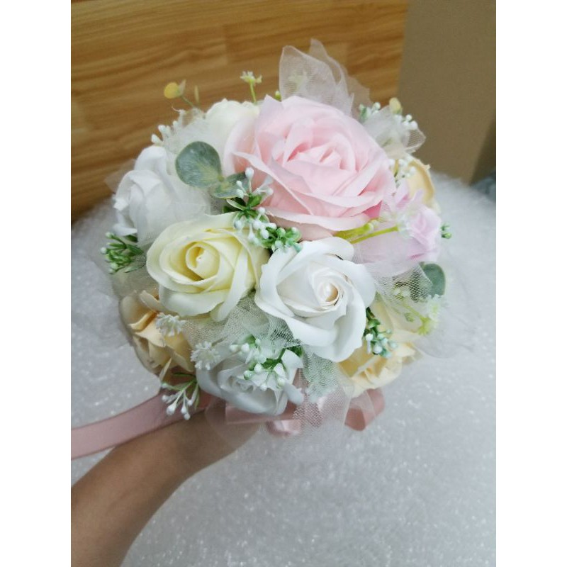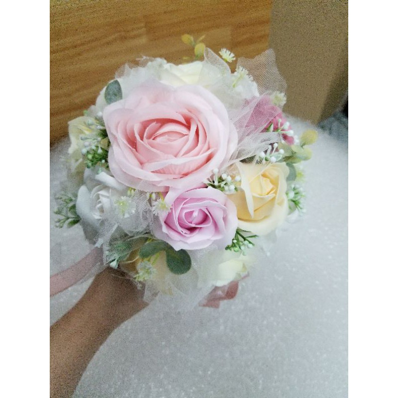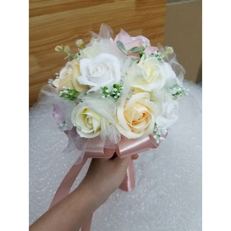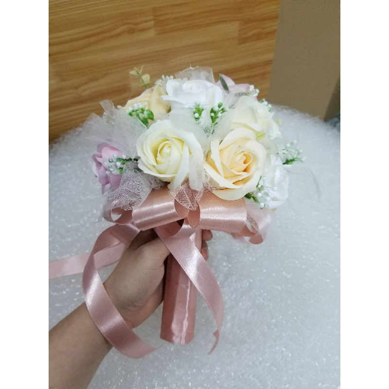 BÓ HOA CƯỚI PHỤ DÂU CẦM TAY (SIZE NHỎ HƠN HOA CỦA CÔ DÂU CHÍNH)BÓ HOA CƯỚI CẦM TAY PHỤ DÂU BẰNG HOA HỒNG SÁP THƠM