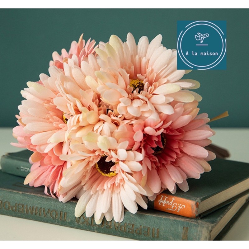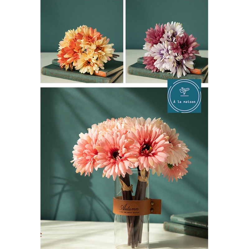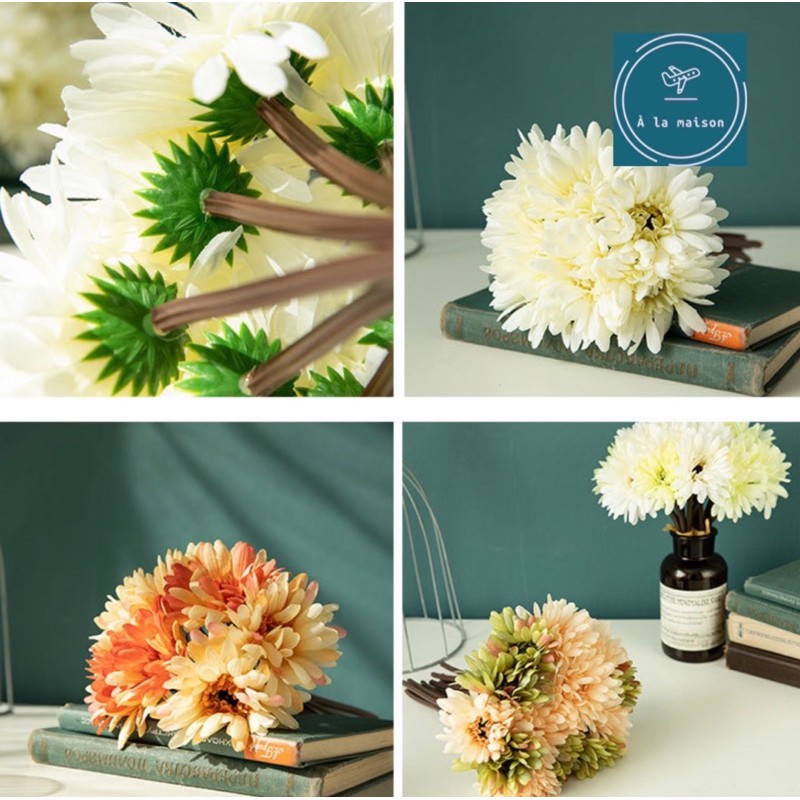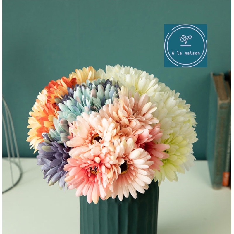 L• Chi tiết : Bó hoa đồng tiền thiết kế bằng lụa, màu sắc phối hài hoà và hoa được làm chi tiết tỉ mỉ và chất lượng theo phong cách Châu Âu. Decor không gian sống sang trọng.