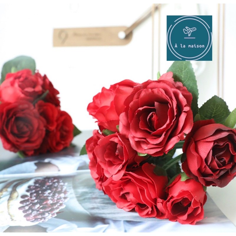 L• Chi tiết : Một bó 7 bông lớn nhỏ phối sắc đỏ đẹp rực rỡ quyến rũ được làm chi tiết tỉ mỉ và chất lượng theo phong cách Châu Âu. Decor không gian sống sang trọng.