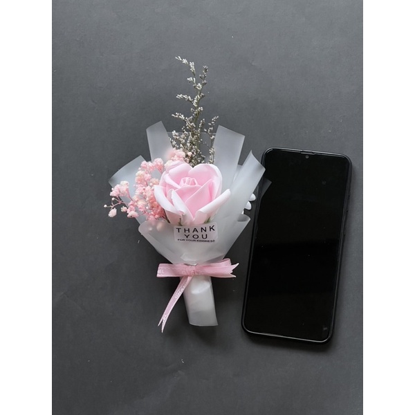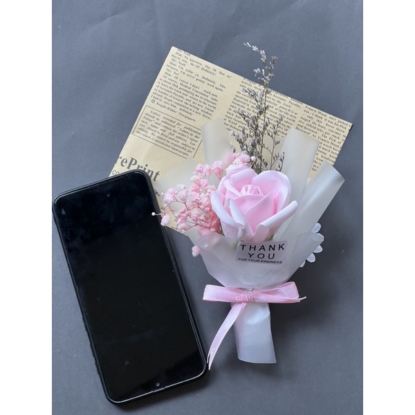 Bó hoa mini dùng trang trí hộp quà, bánh kem. Khách có thể inbox để chọn màu hoa hồng ưng ý nhất.Chiều dài bó hoa tầm 13-15cm.